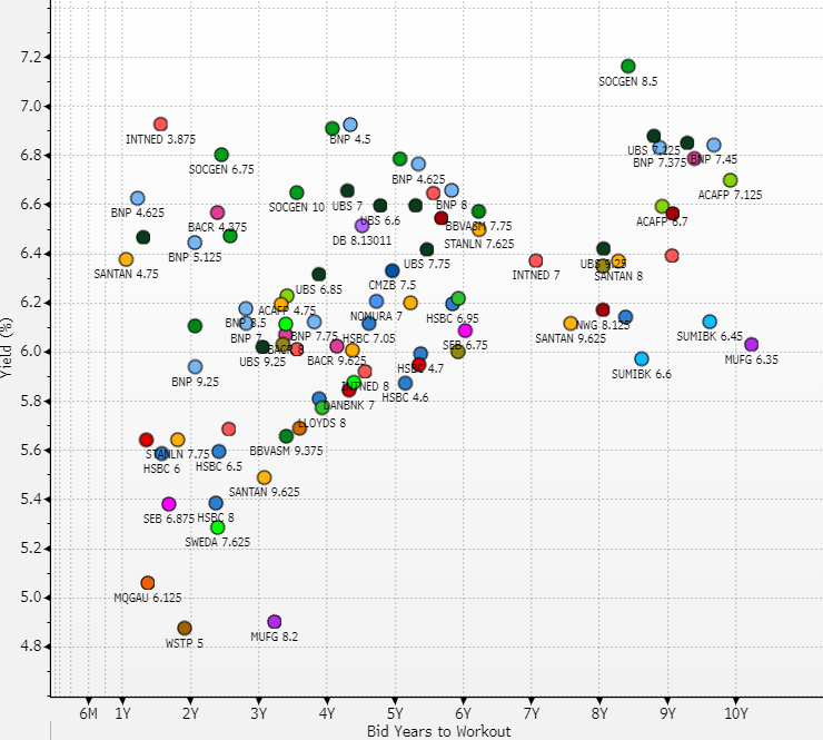 - Finally, for further context, the next best USD AT1 out of European bank 27 call is the UBS 4.875 call Feb 27 at 6.25% YTC.