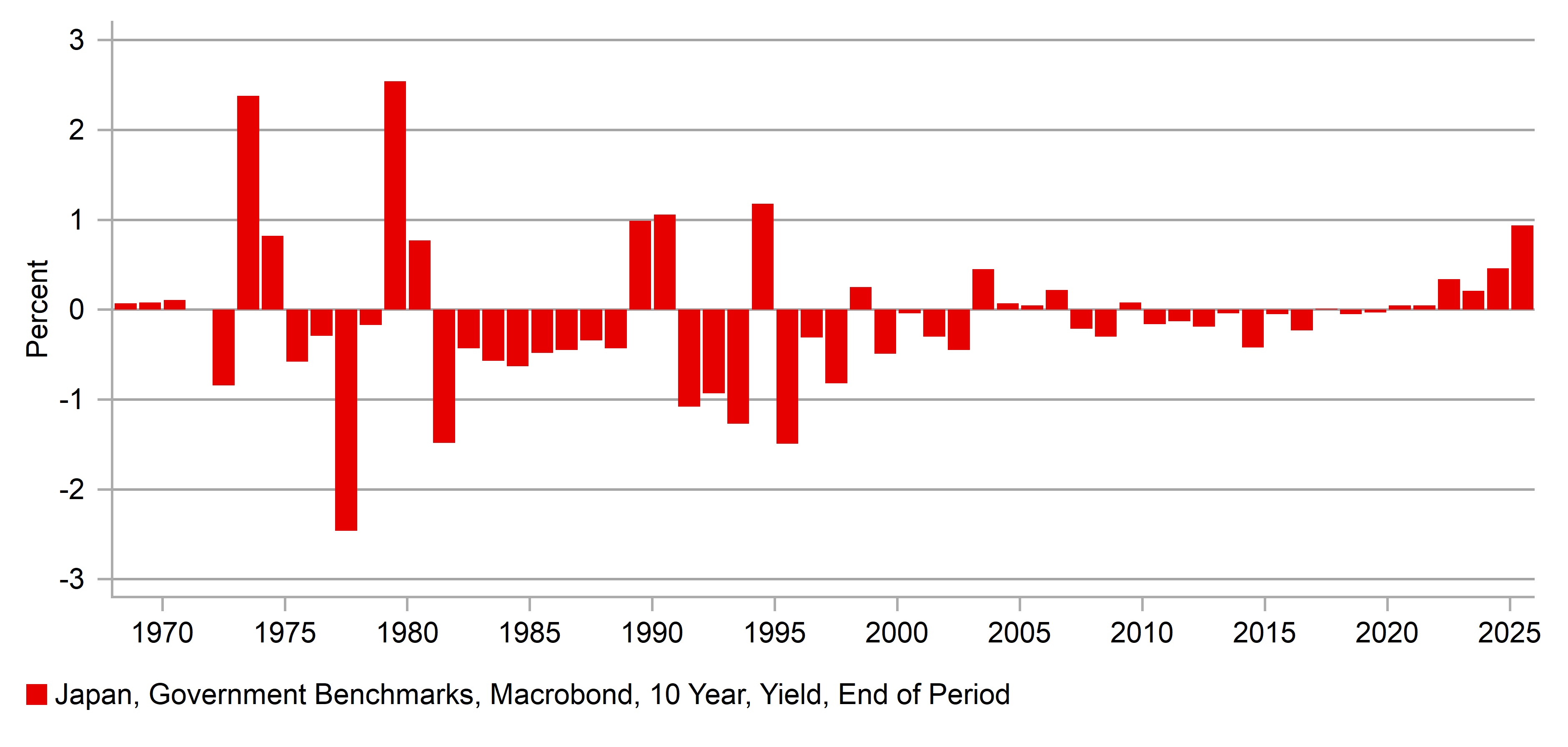 ANNUAL CHANGE IN THE 10‑YEAR JGB YIELD