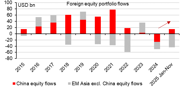 FOREIGNERS TURNED NET BUYERS OF CHINESE EQUITIES IN 2025