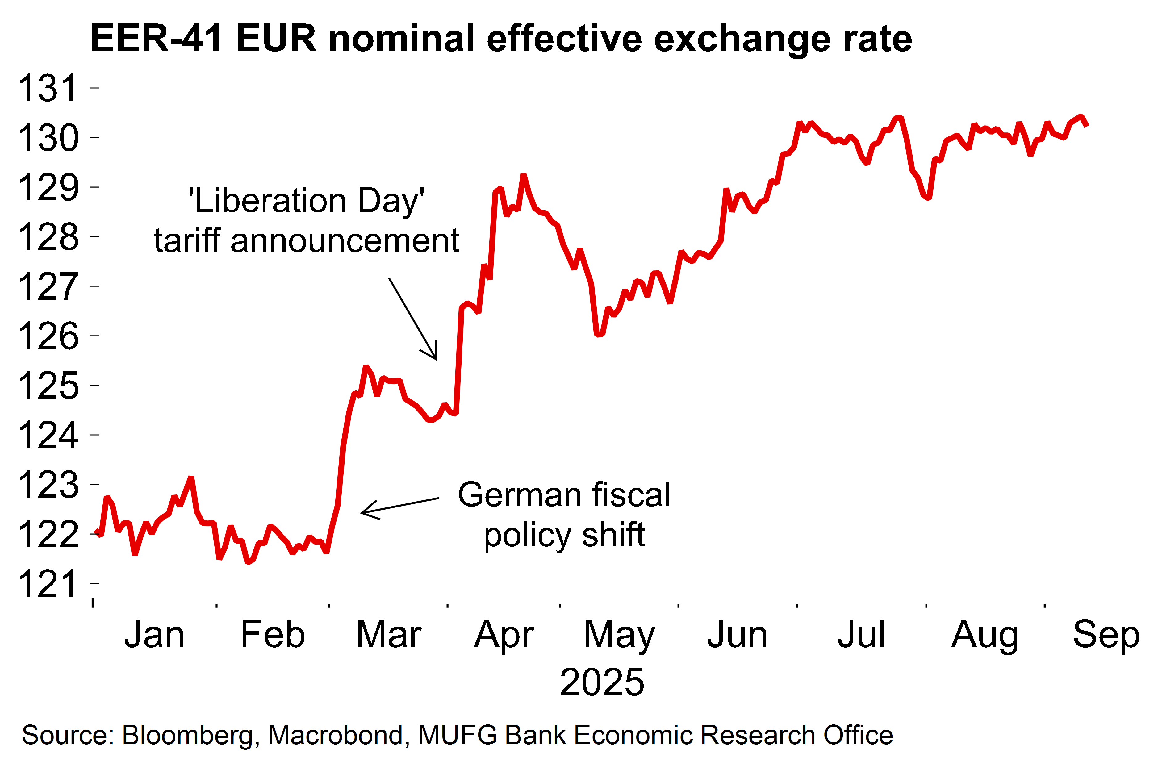 Euro strength is also likely to reinforce the disinflation process. With increased expectations around US rate cuts and concerns around Fed independence, our FX team have raised their EUR/USD forecasts and see a 6.8% advance in EUR/USD by mid-2026, even with further ECB easing expected to come.