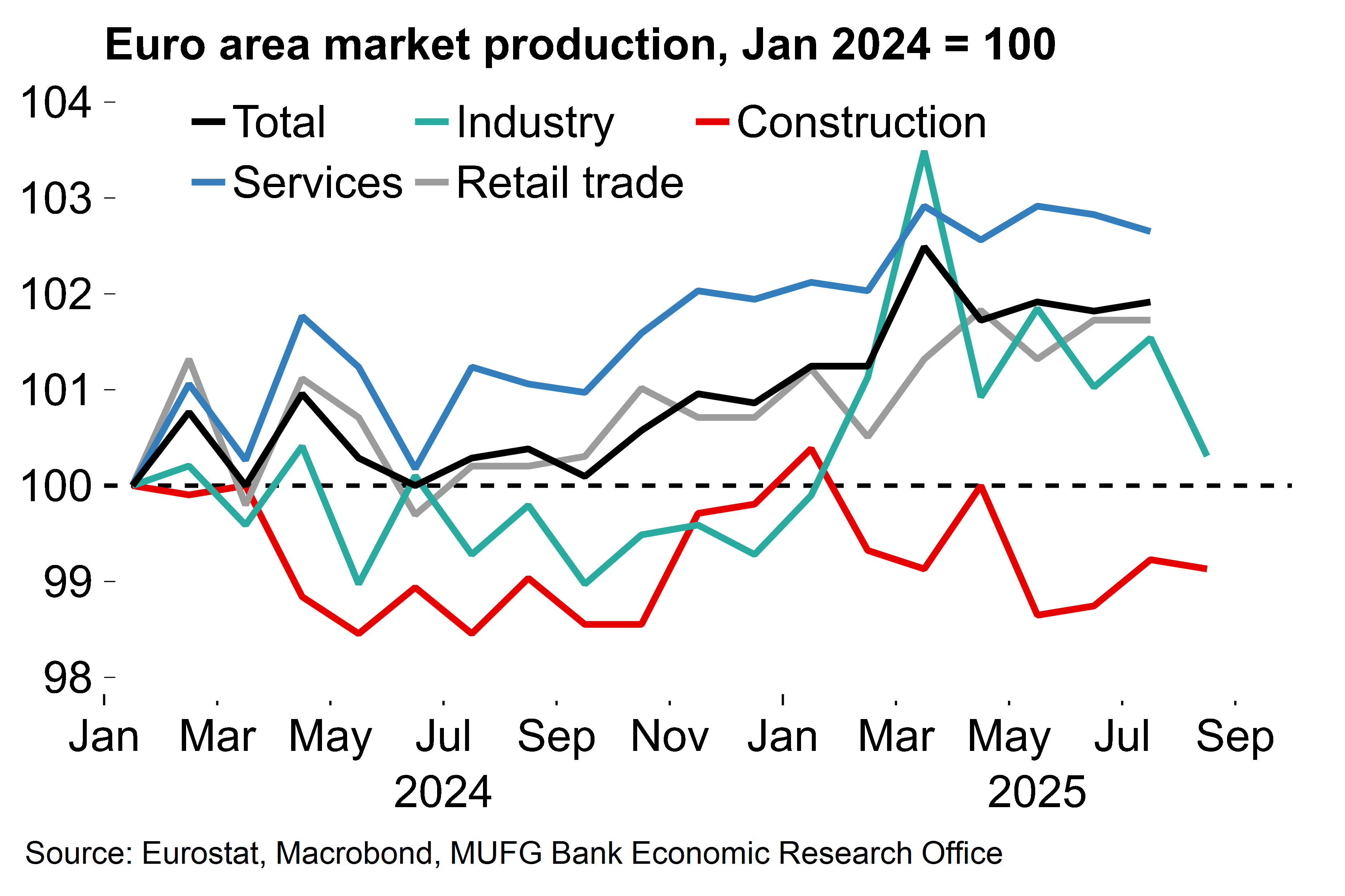 On prices, forward-looking wage indicators are clearly pointing downwards as the scope for real pay catch-up after the 2021-22 inflation shock diminishes. Further euro strength (see here for our FX forecasts) is also set to weigh on import prices. Both we and the ECB expect that inflation will undershoot the target in 2026.